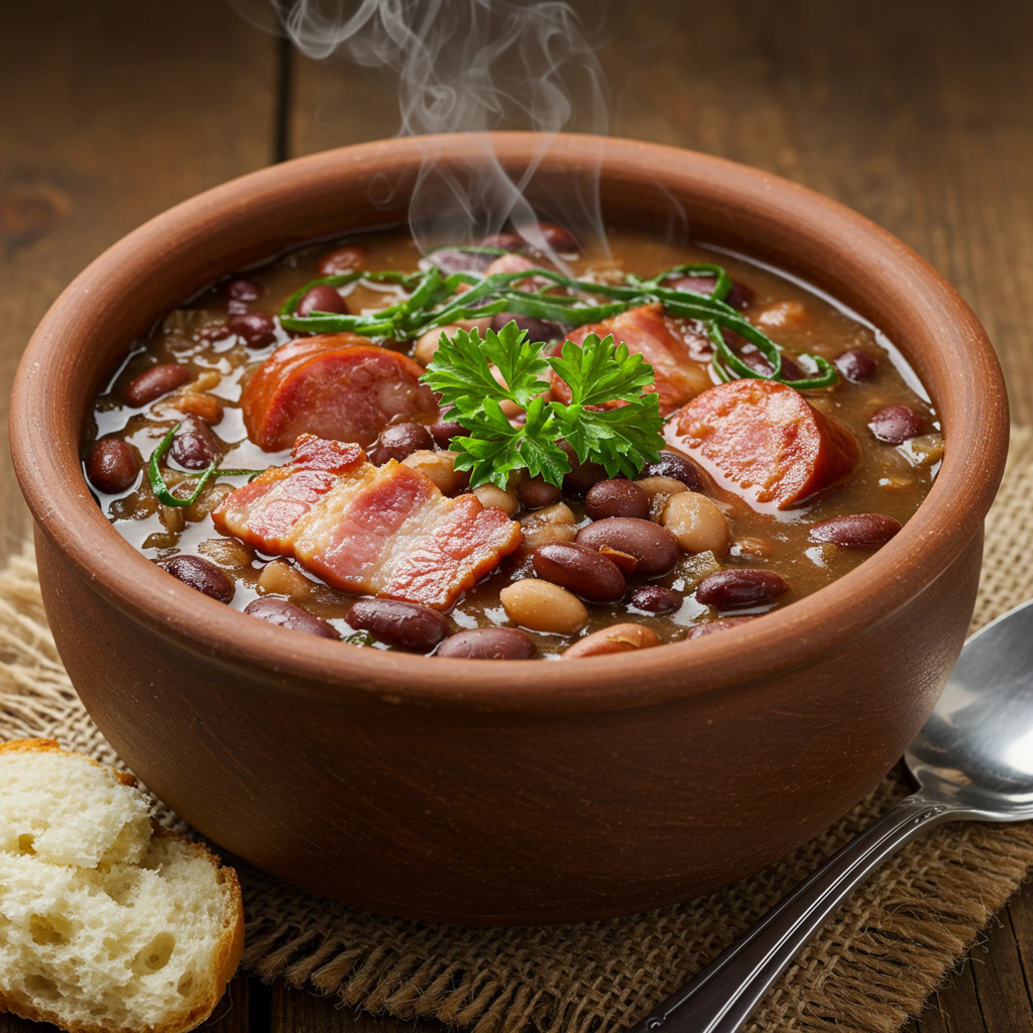 Feijão Carioca, Bacon, Calabresa, Cebola, Alho, Sal, Óleo de soja e Salsinha